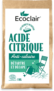 D’origine végétale, l’acide citrique Ecoclair nettoie, détartre et fait briller naturellement vos surfaces. Sans parfum ni additif, il allie traditions d’autrefois et performance moderne pour un entretien écologique et efficace.